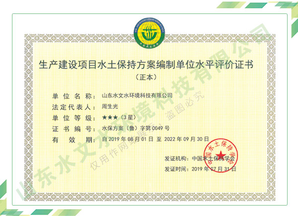 公司擁有水利工程設(shè)計、水土保持、水文水資源調(diào)查評價、水資源論證、建設(shè)項(xiàng)目環(huán)境影響評價、市政公用工程施工總承包、水利水電工程施工總承包、電子與智能化工程專業(yè)承包等資質(zhì),2017年通過質(zhì)量管理體系、環(huán)境管理體系、職業(yè)健康安全管理體系認(rèn)證;2020年被評為國家級高新技術(shù)企業(yè),同年被中國水利企業(yè)協(xié)會推薦為第一批“合同節(jié)水服務(wù)企業(yè)”;2021年被山東省、濟(jì)南市評為 “專精特新”中小企業(yè)。業(yè)務(wù)范圍涉及水利工程設(shè)計;節(jié)水設(shè)計、改造、水平衡測試;山洪災(zāi)害調(diào)查;城市水資源調(diào)查評價;建設(shè)項(xiàng)目水土保持方案編制、監(jiān)測、驗(yàn)收、水土保持規(guī)劃;水安全保障規(guī)劃、建設(shè)項(xiàng)目水資源論證、規(guī)劃水資源論證;建設(shè)項(xiàng)目環(huán)境影響評價;入河排污口論證;防洪影響評價;市政公用工程施工、水利水電工程施工、電子與智能化工程施工等。